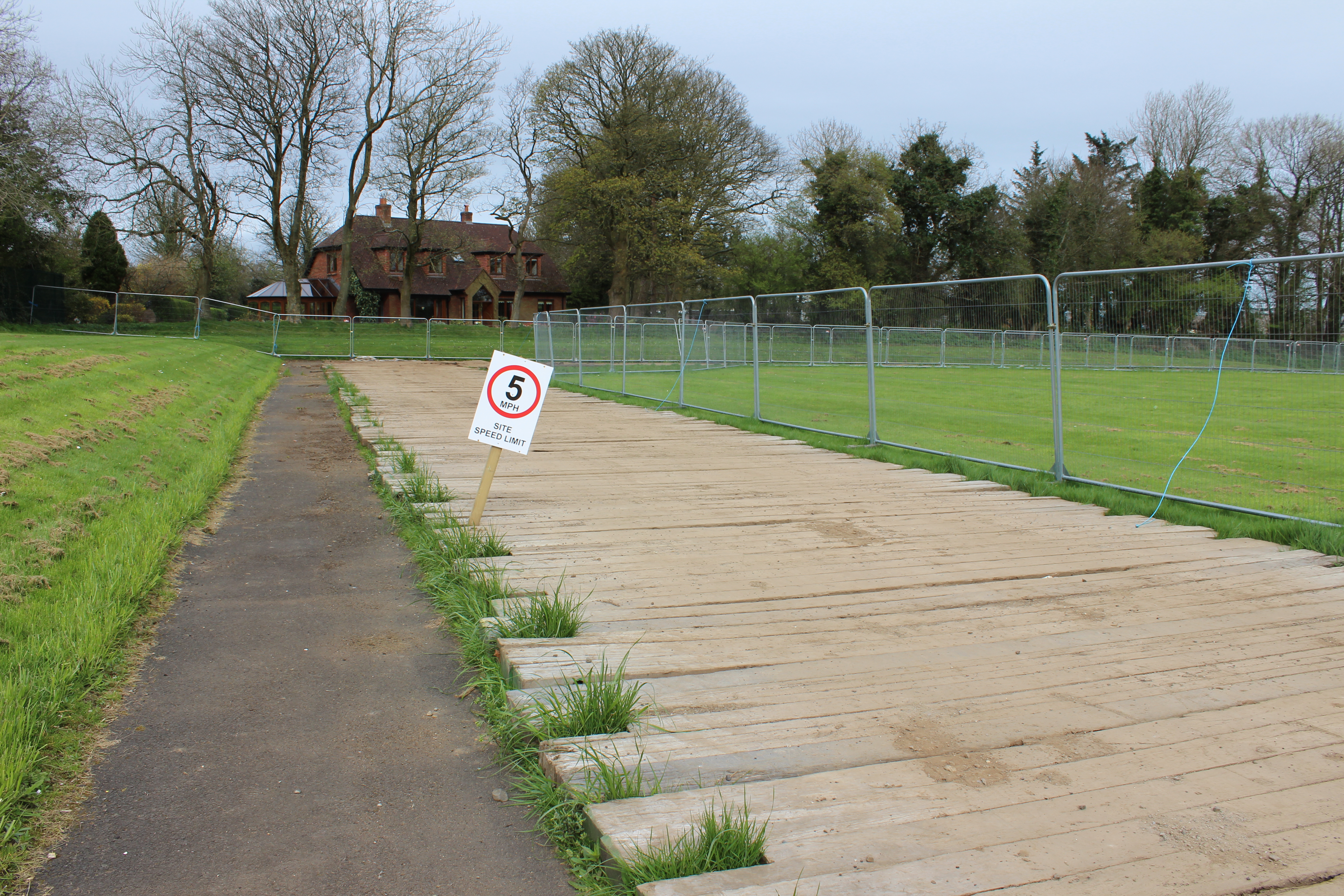 bogmats at Coleraine High School to drive 40 ton crane acroo football pitch